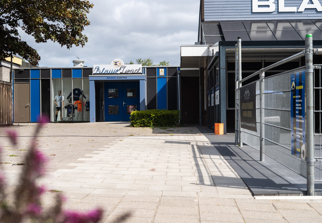 Samen met de voetbalclub hebben we gezocht naar een passende oplossing. De club heeft drie hoofdgebouwen: de tribune, de kantine met kinderdagverblijf, en de kleedkamers met bestuurskamer. Daarnaast zijn er ruimtes zoals een ballenhok en een container.